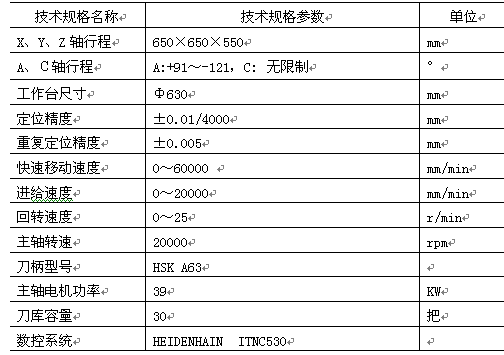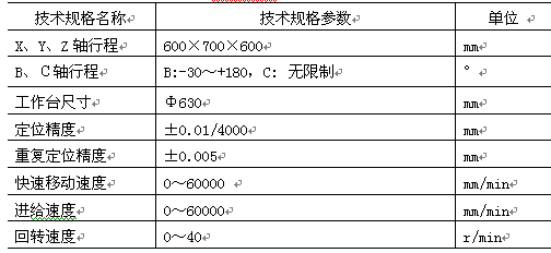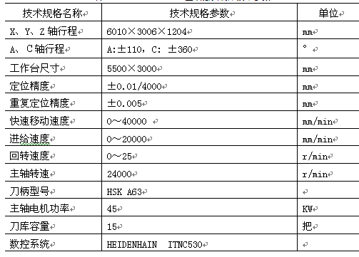 表1-3 MEMPHIS 6000-U型双摆头机床技术参数