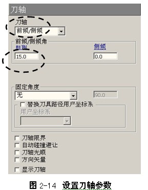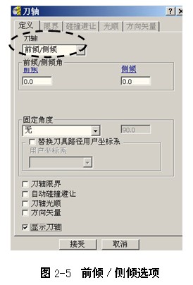 在刀轴对话框中,选择前倾/侧倾选项后,对话框内容如图2-5所示。