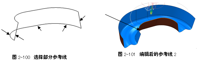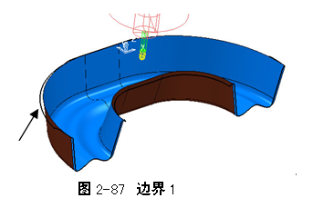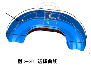 (1)选择曲线:在查看工具栏中,单击线框显示按钮 ,显示出模型的线框要素来。在绘图区选择图2-89所示的曲线。