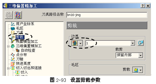 (3)偏置边界:为了减小加工范围,将边界向内部偏置。再次右击边界1,在弹出的快捷菜单条中选择“编辑”→“变换”→“偏置…”,打开边界编辑工具条和偏置对话栏。
