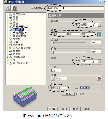 打开直线投影精加工表格,按图3-27所示设置加工参数。