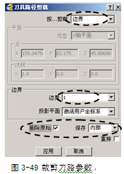 ,打开刀具路径裁剪对话框,按图3-49所示设置参数。