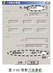 ,打开刀具路径剪裁对话框,按图3-60所示设置参数。