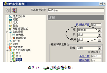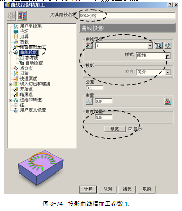 打开投影曲线精加工表格,按图3-74所示设置加工参数。