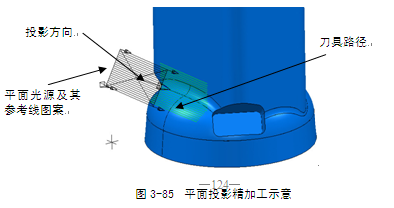 平面投影精加工策略常可用于编制近乎垂直的零件侧壁加工刀路。