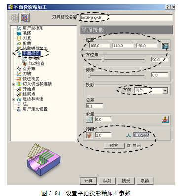 打开平面投影精加工表格,按图3-91所示设置加工参数。