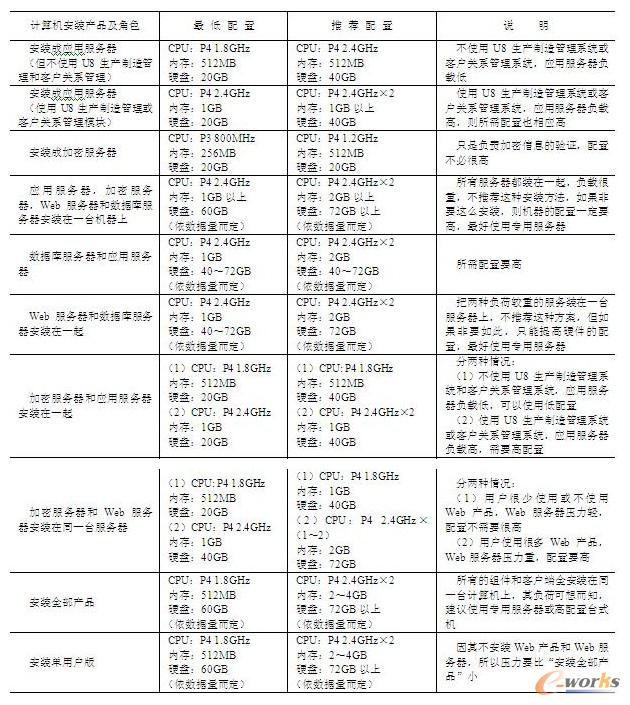 用友ERP-U8的安装根据用户需求的不同而有所不同,对于计算机而言,由于其充当的角色不同,对其硬件和软件环境的要求也将有所不同。