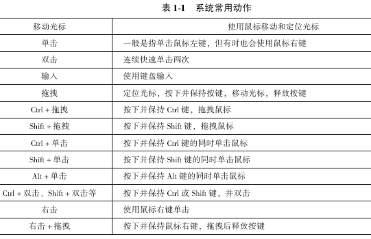 鼠标有(至少有) 两个不同功能的按键。左键通常用来选择/ 取消选择和进入几何图素、实体、文本框、按钮等项目。右键通常进入被选择项目包含的指定功能的上下文菜单。右击确定的项目栏, 将弹出相关的指定功能菜单。