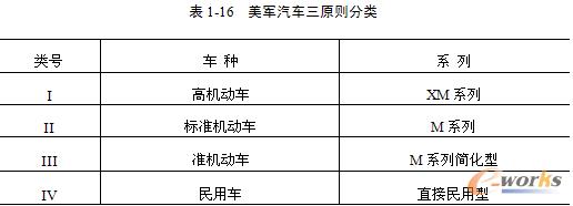 美军在上世纪60年代中期,就对军用汽车提出了军事效能、后勤支援能力和价格高低的三原则分类法。将军用汽车分为表1-16的四个大类。其中就含民用车类。