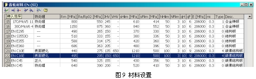 按下图8界面中的“强度”按钮,进入强度校核界面,把材料设置好,参见图9。
