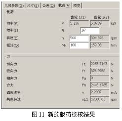 其中,需要记住重新计算之后的载荷校核结果,参见图11。这些数据与初步设计的结果有些不同了,这些数据在后期轴的设计校核中,是原始的设计条件之一。结果模型,同样可以在选定后返回设计加速器,调整原始设计条件后更新。