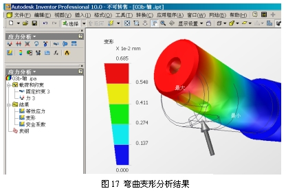 弯曲变形的分析结果如图17,最大值为0.00685mm,符合设计需要。