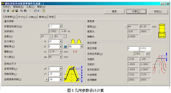 切换到“几何参数”选项卡,输入期望的速比,可见图7中的局部结果。