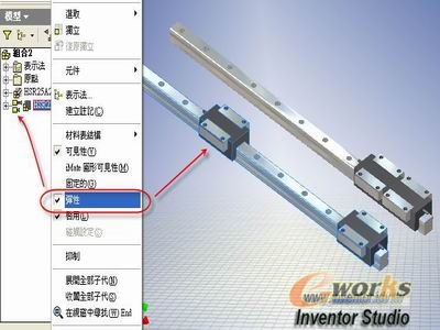 然而在实务上的设计条件是可能会有在相同的零件号码的机构组合下,但是滑座的组合相对位置却不相同,如此严苛的条件Inventor可以达成吗?(以往必须处理成两组不同的组合名称来达成上述的设计条件,但也因此致使BOM表的处理技术相对复杂许多)。