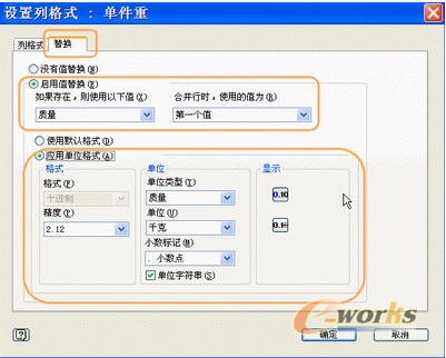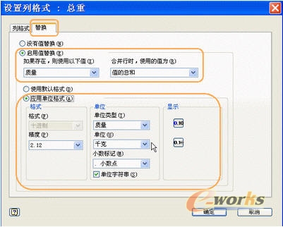 ●在弹出的“明细表列选择器”中,选择“质量”,然后对其单位格式按图(10)进行设置。