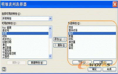 ●利用“上移”、“下移”来调整“所选特性”的顺序,调整完毕后,如图(7)所示。