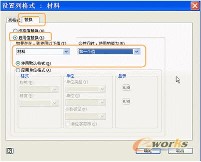 ●单击“特性”栏下的“单件重”。在弹出的“设置列特性”窗口内,单击“替换”—“启用值替换”—“浏览特性”。