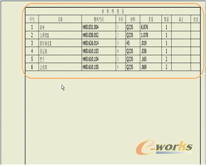 ●创建步骤同前,读者可以举一反三,依据上面的方法独立完成。图(14)为利用BOM表创建的材料明细表实例。在本文的最后,提供这2个样式的文件下载,读者可以自己分析,参考。