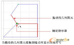 可以通过在草图中添加几何约束来定义设计意图。可以使用自动标注来确定草图是否已被完全约束并在需要时应用约束。也可以通过拖动几何图元,直到光标移过要约束的几何图元,依次类推创建约束。