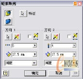 1 在“零件特征”工具面板上,单击“矩形阵列”。