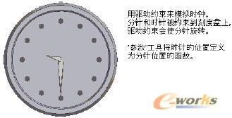 约束零部件后,可以通过修改约束值来生成机械运动的动画。“驱动约束”工具通过在一定范围的约束值内的步进来重置零件。例如,通过驱动一个从 0 到 360度的角度约束,就可以旋转一个零部件。“驱动约束”工具只能限制一个约束。可以使用“参数”工具创建两个约束间的代数关系来驱动其他约束。