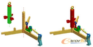 在本练习(分为两个部分)中,首先需要约束提升装置部件中的零部件。应用约束时,请检查自由度,并通过在图形窗口中拖动关键零部件来检查部件的运动。