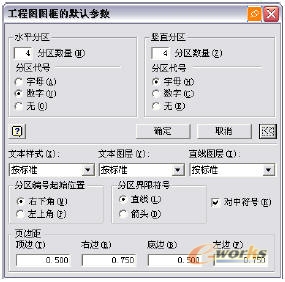 默认图框是参数化的。如果调整图纸的大小,它将自动调整其大小和标签。当插入图框时,将显示“工程图图框的默认参数”对话框。水平和竖直分区数量的默认设置取决于当前图纸大小。