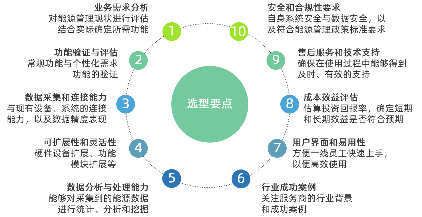 企业实施EMS涉及多个部门和层级,包括能源生产、输配、使用、管理等各个方面,成功实施EMS不仅需要技术层面的支持,还需要关注组织结构、人员培训、企业文化等多个方面。e-works梳理了以下几个重要方面,供企业在EMS选型时参考: