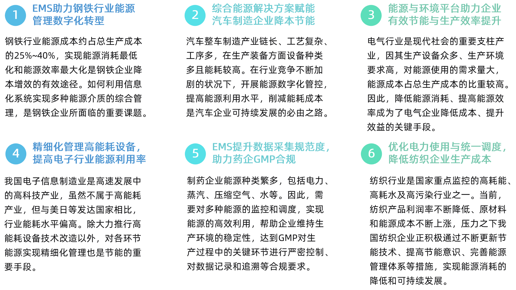 EMS作为一种先进的能源管理数字化解决方案,致力于实现能源使用的高效、安全与可持续。随着物联网、大数据、云计算等技术的发展,EMS对能源基础数据的实时感知、获取、分析和处理的能力不断提升,成为了工业企业进行能源集中化、扁平化、精细化管控,实现绿色发展的重要工具。