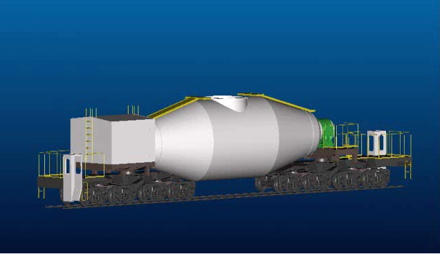 鱼雷型混铁车配置在高炉出铁平台下,高炉铁水经流铁沟被装入混铁车。装满铁水的混铁车在机车的牵引下,从炼铁厂运送到炼钢厂。并通过罐体倾翻将铁水倒入受铁坑的铁水罐内。出铁终了的混铁车再由机车牵引送回到炼铁厂。混铁水车特点如下: