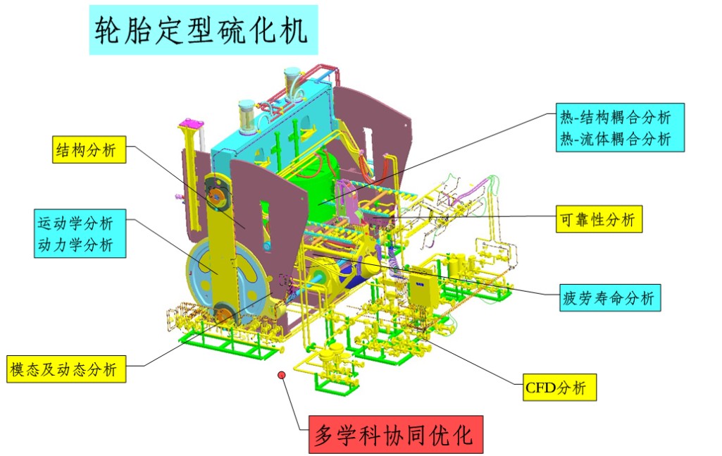 2.利用ANSYS、 MSC.ADAMS和Flunt等CAE/CFD分析软件,进行计算机辅助优化及虚拟样机分析设计。然后再进行硫化机的加工、试验、验证,最终确定产品结构最优化设计方案;