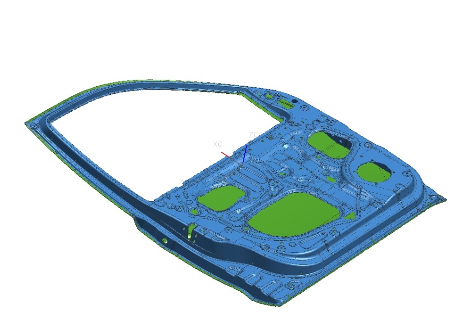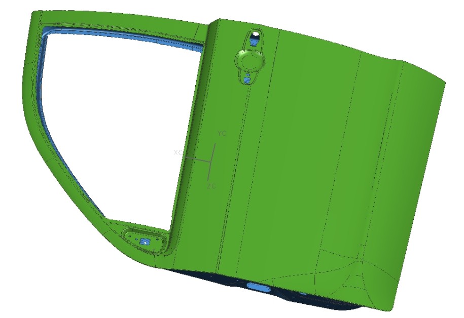 该阶段运用专业数据处理与优化软件CAD-DOCTOR对三维模型进行优化优化前车门内板数据量高达130M,优化以后数据量仅为40M