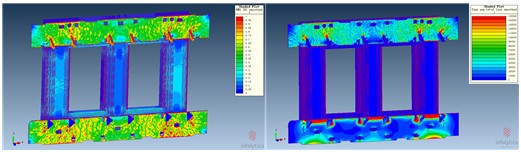 2.绝缘强度。通过有限元分析手段,对不同情况下变压器的内部电场进行分析,使变压器内部没有场强过度集中的区域,同时通过合理使用绝缘材料及优化电极形状,做到变压器无局放设计;通过变压器波过程的有效分析,确保变压器能承受雷电冲击等各种冲击过电压。