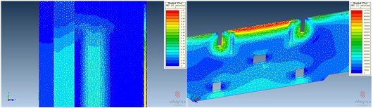 低损耗变压器是公司自主研发的新一代大型电力变压器。该变压器在技术上有重大创新突破,通过磁场的仿真能有效地降低变压器损耗。产品具有低损耗、低噪声、运行温度低等特点。通过分析变压器漏磁场分布,找到损耗集中的区域并改进结构和材料,使局部损耗降低,防止局部过热。经过漏磁场分析发现用无磁钢做腹板损耗反而大,且损耗集中容易产生局部过热。通过改良材料,用普通的Q235钢做腹板损耗降低且损耗均匀分布,有效地避免了变压器损耗偏大和局部过热现象,为变压器长期稳定运行提供了保证。