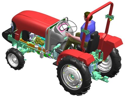 使用三维CAD软件进行产品研发,直观地获得了拖拉机数字化样机,在拖拉机未试制之前即可进行装配、运动、人机工程、外观等分析,很容易发现拖拉机设计过程存在的错误以及不合理的地方,及时进行修正,大大节约了产品的试制周期和试制成本,节约试制周期40%,和节约试制成本35%,失误率降低60%,成功率提高了80%。2013年生产30-40A系列拖拉机8000台,产值2.4亿元。同时,也方便了公司与国内外设计、制造公司的交流,大大节约了技术文件的沟通时间和成本。