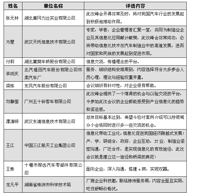 | 2004年11月12日,由中国汽车工程学会指导,武汉市科技局、武汉经济技术开发区管委会、湖北省汽车行业协会、十堰市科技局、e-works中国制造业信息化门户网(武汉制造业信息化生产力促进中心)联合主办的“2004中国汽车产业信息化与供应链管理峰会”在汽车工业重镇武汉隆重召开。
