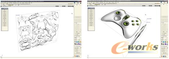 那么首先要向各位推荐的是Alias软件,这是世界大多数工业设计者都在使用的软件。它的草图,是从数字化板开始的(如图七)。这个草图,很像类似于在白板上用马克笔画出的草图。但是它可以进一步细致的勾画,把图形自动变成一个基础的三维模型(如图八)。我们希望世界所有的工业设计师都能从数字化的草图开始,然后进行后面的设计,这就是我们未来将向各位推出的技术,一个非常容易使用的工具,可以帮助你借用草图把数字化信息都表达出来,并且用很容易的方式把它变成三维模型。