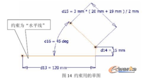 这种方法适用于设计参数尚不太清楚,只是能够确认几何结构和装配关系的条件下。这是典型的“变量化设计”模式,原理上最贴近人的思维。当然,零件上准备按装配关系确定尺寸的特征,就不能施加尺寸约束。