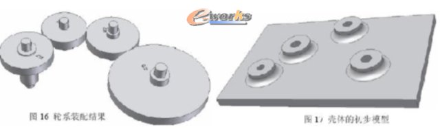 3. Z17介轮用相切约束装配到位,各齿轮的端面“表面平齐”… 完成后保存为002-轮系.IAM。参见图16。 轮系装配结果 图17 壳体的初步模型。