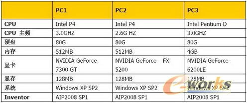 Inventor对电脑配置的要求较高,因此提高大型装配在Inventor中的运行速度,最直接的方法就是提高计算机的配置。建议使用的标准配置为了证明这一点,我们选用了几台不同配置的电脑对一个大型装配文件做了对比测试,这几台电脑的配置如表1。