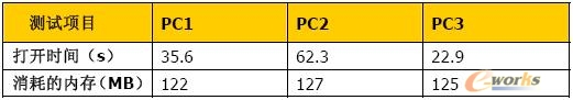 由以上数据看出,每台电脑打开这个大型装配消耗的内存数量都相差无几,这是必然的结果,但对于配置好的电脑来说,打开大型装配的速度却有很大的提高。