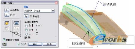 4.2 创建扫掠路径和引导轨迹,扫掠路径应该要保证扫掠后的实体包含贴合面;