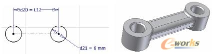 开始新零件,绘制杆的概念草图,衍生004-计算.IPT的参数,引用有关参数标注杆长的驱动尺寸,参见图2-10,保存。