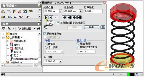 点评:从Inventor 11开始,系统提供了“运动仿真”模块用于运动学仿真计算,其中有专门的工具用于仿真弹簧运动和进行相应动力学分析。有关“运动仿真的内容”会在后续的话题中涉及。