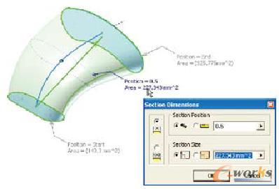 | | Inventor 的「开启」对话框已经由「开新档案」对话框所取代,这个新的对话框符合标准的 Windows 对话框定义。这些对话框以及「放置组件」、「另存」和「另存复本为」的对话框一样是可以调整大小、保留目录并显示设定值,且对「桌面」、「我的文件」、「我的网络」等等可以直接进行标准存取。 六、形状设计 形状管理员已经取得新的工具,以改善复杂的设计作业流程并简化液压与气动组件的设计。 零件模型工具 面积断面混成:在「断面混成」工具里有个新的「面积断面混成」选项可让设计工程师沿着中心线挑选点,并对各点定义截面区域或比例系数。此功能的主要用意是在于简化液压与气动组件的设计,但也可用来随设计工程师的想法放置与比例放大截面,以为了美观的目的而调整断面混成的形状。 边界条件现在会影响整个断面混成而不是单一剖面,提供较平滑、有组织的形状;表面的行为的强化改善了布尔、薄壳与偏移的运算。  新的折弯零件特征 透过在 Inventor 2008 里新的「折弯零件」工具,设计工程师现在可以沿着所选定的草图线弯曲既有的零件本体,可让经转译的 MDT 弯曲功能如同原生 Inventor 图案般加以编辑。