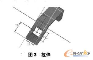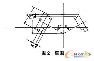 | | 2.2零件环境 任何时候创建或编辑零件都会激活零件环境。可以使用零件环境来创建特征、修改特征、定义定位特征、创建列阵特征以及将特征组合为零件。可以使用浏览器来编辑草图特征,显示和隐藏特征,创建设计笔记,使特征自适应。下面对一个较复杂的零件一电刷架进行造型: (1)新建一个零件文件,以任意平面绘草图。开始只需绘对称轴左或右的任意一部分(见图2),然后用镜像工具,可以减少工作量。  右击选中结束草图,弹出下对话框,截面轮廓为下封闭区域,加材料,选中距离,在对话框中输人尺寸即可。 (2)在凸台上开电刷孔,在下斜面上绘草图,完成草图后拉伸,以里面的正方形为截面轮廓、减材料的方式、贯通的方式(见图3)。 (3)再在孔里做凸台,以上特征的草绘平面为草绘面,画下草图。  (4)镜像以复制电刷孔,在中间建立工作平面,选择B,C两特征,再选刚建立的工作平面为镜像平面,最后"确定"(见图4)。  | | | | |