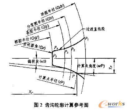 | | 1.3开发关键技术 Inventor VBA是由微软提供并集成到Inventor中的一个特定开发工具。一方面它是与VBA通用的,同时还可以被定制,以满足特定程序的要求。通过定制,可以把程序嵌入到Inventor文件中,从而使程序与数据绑定在一起;也可以把程序存储为独立的.IVB文件,使其他用户可以共享该文件。 Inventor API是以面向对象的方式暴露Inventor内部对象的,因此开发主要涉及两个过程:对象的声明和对象实例的赋值。对象声明的格式为:Dim对象变量名As对象名;对象实例赋值的格式为:Set对象实例=……。如: *声明Inventor草图圆弧对象变量:Dim oArc As SketchArc *在草图环境中画一段圆弧。圆弧圆心为(0,0),起点为(10, 0),终点为((0,10),绘制方向为逆时针方向(如按顺时针,最后一个参数应改为False):  2渐开线标准齿轮参数化造型程序实现 虽然渐开线齿廓和相关的实体造型在设计过程中不是必需的,但对于机构演示、要求较低的数控加工还是必要的。在这种需求下,齿轮设计参数也可以进行适当简化。本文中对于高度变位系数、角度变位系数、齿厚渐薄量等齿形修正参数暂未考虑。 2.1齿廓基本参数与表达 按照标准齿轮设计规则,有如图2所示齿沟轮廓计算参考图。