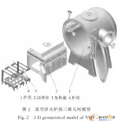 | | 1 几何模型模块 几何模型模块是本系统的基础。几何建模包括全部几何模型参数化特征零件造型、零件装配以及通过对参数文件的链接,将参数文件定义的变量与相应几何模型的模型尺寸进行关联。真空淬火炉的几何模型是在Autodesk Inventor中建立的。几何模型尽可能体现出零件制造(部件装配的思路,同时考虑工程图的创建及尺寸的生成。与实际装配一样,结构模型要反映出部件的装配体系,即零件构成子部件、子部件构成部件。真空淬火炉几何模型也是这样,如壳体由炉门和炉体组成,炉门和炉体又由一些子部件组成,而不要将所有的零件装配到一个部件中。这样做,思路清晰,有利于子部件工程图的创建及尺寸的生成。零件的建模和装配使用了Autodesk Inventor中的iFeature、iPart、iMate及自适应等技术。图 2所示为真空淬火炉(炉体部分)的装配几何模型。