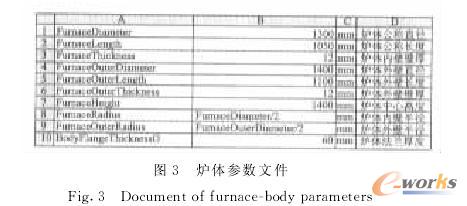 2 工程图模块 工程图就是我们平时所说的图纸,它是机械设计的最终结果。工程图是在Autodesk Inventor中,根据零件或装配的几何模型进行创建。工程图与几何模型相关联,当几何模型发生改变后,工程图会自动更新。 工程图模块与几何模型模块应该是对应的,即每一个零件或部件都应生成一个工程图,工程图也要反映出零件的装配关系。一个工程图中可包含多张图纸,每个图纸又有多个视图。由于Autodesk Inventor采用的设计标准与我国的国家标准不完全吻合,它直接生成的工程图还不能完全适应设计(生产的要求,需要用户自己定制绘图标准 (Autodesk Inventor提供了这项功能)。 3 参数文件模块 参数文件在Microsoft Excel中建立,其作用是定义变量并对变量赋值。参数文件中的变量要想在几何模型文件(Inventor文件)中使用,必须将参数文件链接到几何模型文件中。链接后,参数文件定义的变量形成几何模型文件中的表参数,可驱动模型尺寸。参数文件需要按照一定的格式编写,不需要表头。正确的顺序按列排列为:参数名、数值或等式、度量单位、备注。其中参数名称和值是必需的,其他选项是可选的,参数名可以是汉字。图 3所示为炉体参数文件的一部分。参数文件的修改只能是数值上的改动,文件的结构是固定的。要说明的是,系统中的参数是有选择的$主要的设计参数,而不是一个炉子的所有参数。  参数文件为Excel文件,可用多种方法进行修改。在VQP-PDS中,是用Visual Basic程序将参数数据写入参数文件中。Visual Basic程序可以读取Excel文件中的数据,或将数据写入 Excel文件中,但对 Excel文件的读写操作的速度是较慢的。本系统只对 Excel进行写操作,而不读取数据。 | 本网发表此文,并不代表赞同本文的观点。 | | | | 责任编辑:eworks编辑 |