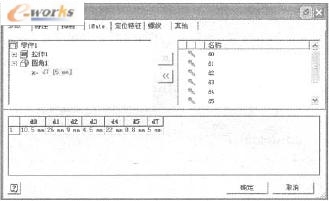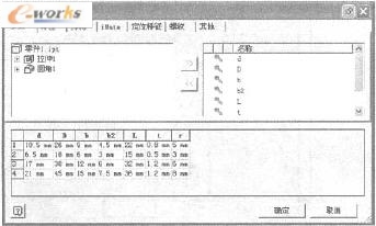 按下拉菜单“工具”--“创建iPart”,系统弹出的(创建iPart)对话框中,零件的所有特征都列在”参数”选项卡的左边列表框中。双击某个特征,该特征所有的参数都将映射到右边的列表框中。如果只需要将某个参数设为可变参数,只需要展开相应的特征,双击该参数即可将其映射到右边。同时,在整个“参数”选项卡的下方列表框中,系统将选中的参数变量(需要进行配置的零件尺寸和零件特征)及其第一实例参数值列出来。如图2所示。